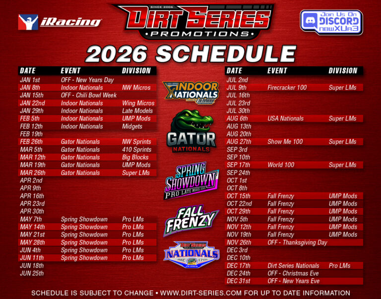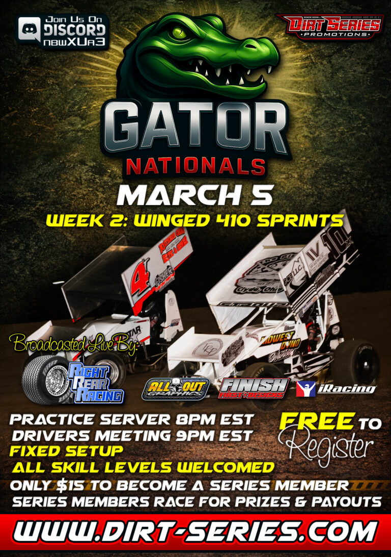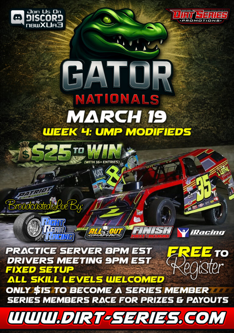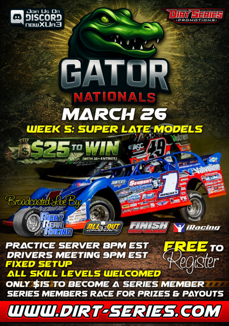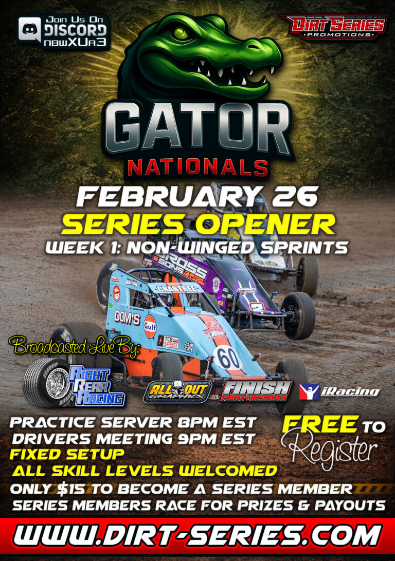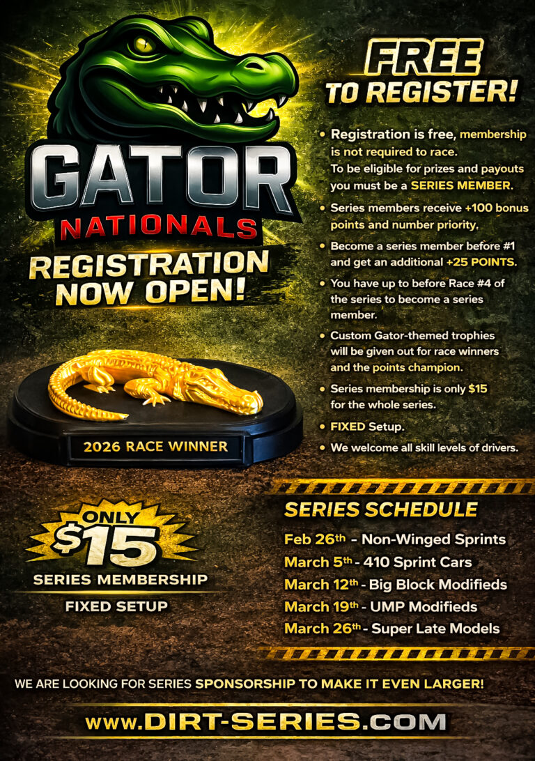 2026 Gator Nationals• Fixed Setup• 5 Events, 5 Classes, 1 Champion(NW Sprints, 410 Sprints, Big Blocks, UMP Modifieds & Super Late Models)• FREE to Register• $15 to be a Series Member